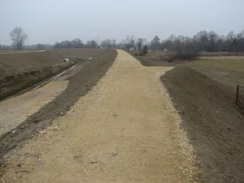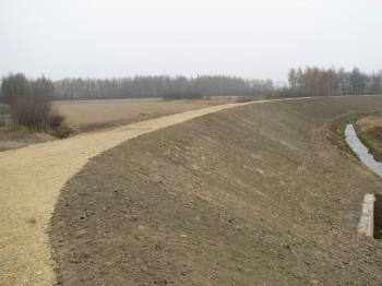 Zakres robót obejmuje wykonanie robót pomiarowych i ziemnych - uszczelnienie korpusu i podłoża wału poprzez wykonanie przesłony przeciwfiltracyjnej bentonitowo – cementowej w osi wału (o szerokości ok. 30 - 35 cm, o zmiennej głębokości), podwyższenie istniejącego obwałowania od km 0+000 do km 0+716 na długości L=716 mb, ), uzupełnienie nasypu korpusu obwałowania po wykonaniu przesłony, plantowanie skarp, dna rowów, korony nasypu, likwidację 3 śluz wałowych, remont 2 śluz wałowych, humusowanie i obsiewu skarp wału i skarp rowów, utwardzenie korony wału wraz z przejazdami wałowymi, odtworzenie punktów osnowy geodezyjnej i słupków hektometrowych.