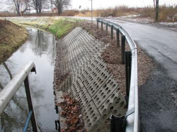 Zadanie obejmuje wykonanie zabezpieczenia skarpy drogi płytami JOMB, wykonanie palisady z drewna iglastego na dł. 24 mb oraz odtworzenie fragmentu jezdni wraz z wymianą konstrukcji - pow. 7,5 m2.