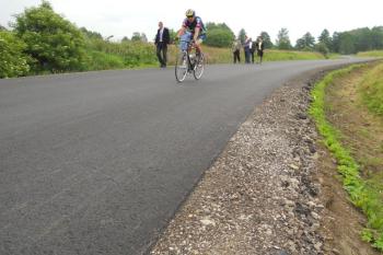 Kolejnym etapem realizacji zadania była zabudowa elementów poprawiających bezpieczeństwo ruchu drogowego na wyremontowanym w odcinku drogi. W ramach powstałego oznakowania wykonano linie krawędziowe na całej długości odcinka jezdni oraz zabudowano znaki pionowe. Oznakowanie pionowe obejmuje także zabezpieczenie niebezpiecznych zakrętów na drodze.