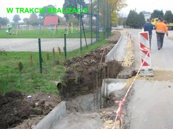 Ponadto na odcinku pomiędzy ul. Kombatantów i ul. Do Pomnika wykonano poszerzenie jezdni do 5 m, a w rejonie boiska sportowego i placu zabaw powstał teren utwardzony z przeznaczeniem pod miejsca postojowe dla samochodów osobowyc