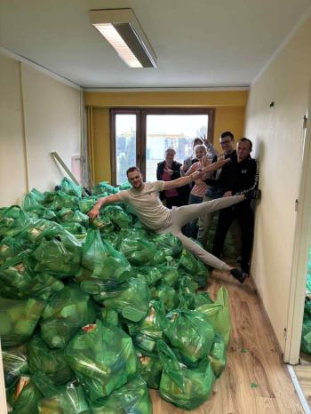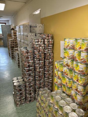 Produkty spożywcze w ilości ok. 16 ton zostały przywiezione i złożone w wyznaczonym do tego pomieszczeniu w formie paczek żywnościowych, które wydawane były przez pracowników socjalnych w siedzibie Szkoły Podstawowej w Rajsku, w magazynie przy