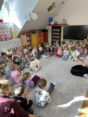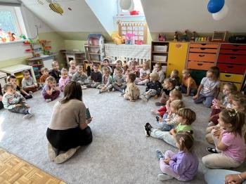 W naszym przedszkolu świętowaliśmy Dzień Głośnego Czytania - wydarzenie promujące wspólne czytanie oraz rozwijające wyobraźnię, słownictwo i pamięć dzieci. Naszym wyjątkowym gościem była Pani Renata Stefańska z Gminnej Biblioteki z filią w Porębie Wielkiej. Pani zaprezentowała dzieciom piękna książkę pt. "Wypożyczalnia skrzydeł". Serdecznie dziękujemy za poświęcony czas i zaangażowanie w szerzenie czytelnictwa wśród najmłodszych.