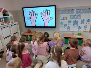 15 października obchodziliśmy Światowy Dzień Mycia Rąk. Celem tego dnia jest uświadomienie dzieciom jak ważne znaczenie ma w ich życiu codzienne mycie rąk. We wszystkich grupach przedszkolnych odbyły się rozmowy na temat zarazków, bakterii i wirusów, które dostają się do naszego organizmu poprzez brudne ręce. Dzieci dowiedziały się, jakie znaczenie dla zdrowia ma czyste i dokładne mycie rąk. Omówiliśmy także schemat mycia rąk oraz zastosowaliśmy go w praktyce. Wspólnie wykonaliśmy prace plastyczne promujące mycie rąk. Nie zabrakło też piosenek związanych z czynnościami samoobsługowymi i nawykami higienicznymi.