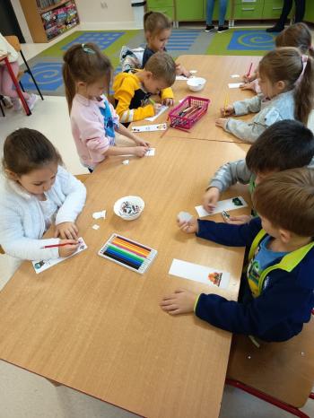 21 i 28 październik były dniami , w których kolejno grupa Podróżników oraz Tropicieli odwiedzła Szkołę Podstawową w Porębie Wielkiej. Przedszkolaki uczestniczyły w zajęciach bibliotecznych prowadzonych przez panią Basię Gabryś. Z zainteresowaniem słuchały ciekawostek o książkach, ich gatunkach i roli, jaką pełnią w życiu człowieka. Wykonały kolorowe zakładki do książek oraz wykazały się pomysłowością i zręcznością podczas zabaw na świetlicy. Na zakończenie spotkania dzieci otrzymały w prezencie książki, do których włożyły własnoręcznie wykonane zakładki. Bardzo dziękujemy pani dyrektor Marcie Brzezieckiej oraz paniom Barbarze Gabryś i Lucynie Wajdzik za zaproszenie i miło spędzony czas podczas pobytu w szkole.