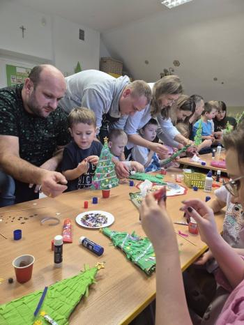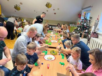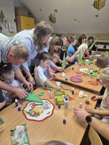 Rodzice i dzieci z zapałem wykonywali piękne ozdoby, wykazując przy tym wiele pomysłowości i kreatywności. Wspólna twórczość w atmosferze zabawy, zaangażowanie, przeżyte emocje, a co najważniejsze czas, który dzieci spędziły z rodzicami to bardzo cenne doświadczenie dla obu stron.