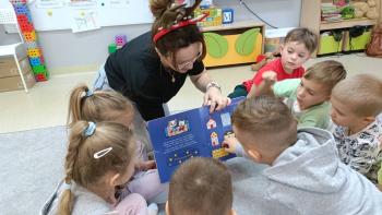 Tuż przed świętami nasze przedszkole odwiedziła bibliotekarka Pani Renata Stefańska. Tym razem spotkała się z dziećmi z grupy Tropicieli. Podczas spotkania przeczytała dzieciom świąteczną bajkę, zachęcała także do odwiedzania biblioteki wspólnie z rodzicami.