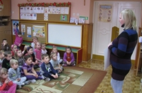 Psycholog z Gminnego Ośrodka Pomocy Społecznej opowiadała dzieciom o tym w jaki sposób powiny się zachowywać w sytuacjach zagrażających ich bezpieczeństwu fizycznemu i psychicznemu.