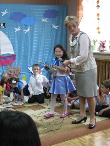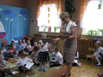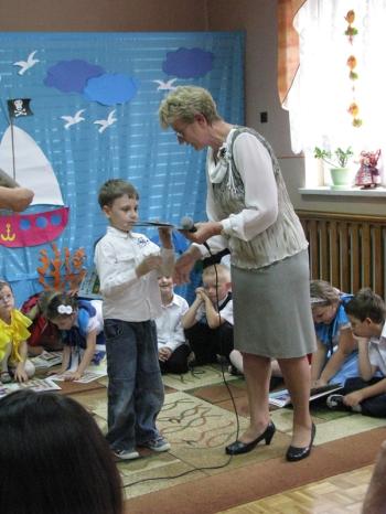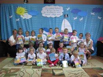"Maluszki" i "średniaki z okazji zakończenia roku szkolnego także otrzymały kolorowe książeczki, które wręczyła im pani dyrektor.