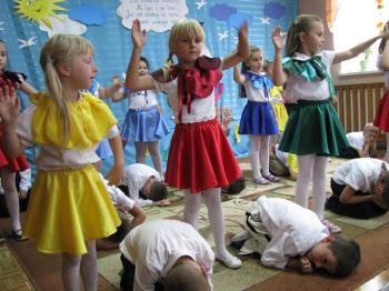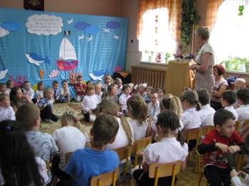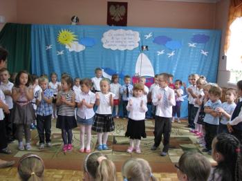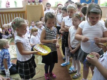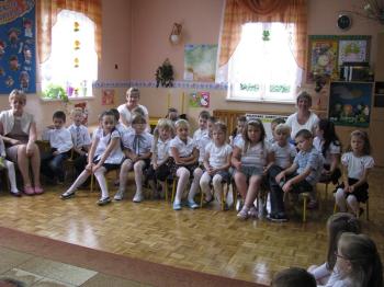 Już minął rok szkolny czas żegnać starszaków, które już od września będą chodzić do szkoły. Dzieci z młodszych grup przygotowały dla nich niespodziankę - wiersze, piosenki, wspólne zabawy, a także upominek, który będzie im przypominał młodszych kolegów.