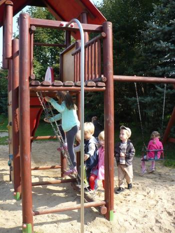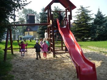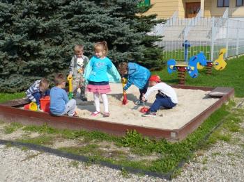 Słoneczna pogoda sprzyjała wyjściom na spacery i do ogrodu przedszkolnego.