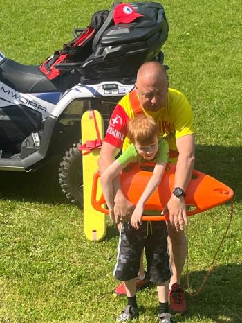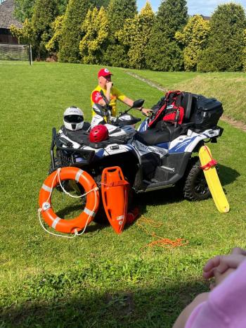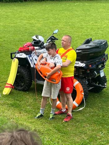 Uczniowie dowiedzieli się jak bezpiecznie zachowywać się nad wodą i jak wygląda sprzęt używany przez ratowników wodnych. Mogli założyć kamizelkę ratunkową i poznać technikę rzucania kołem ratunkowym.