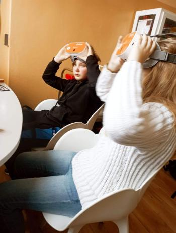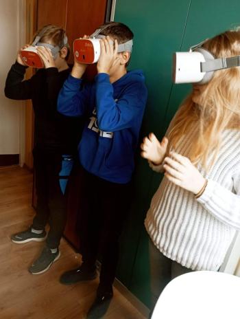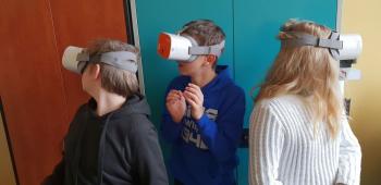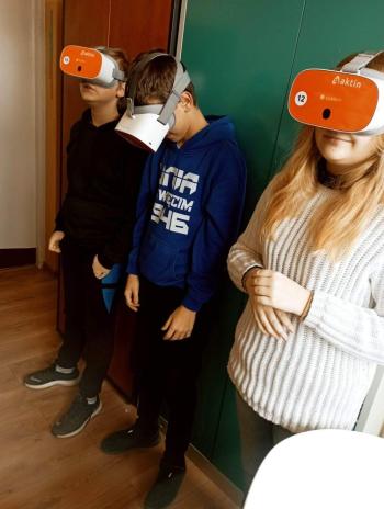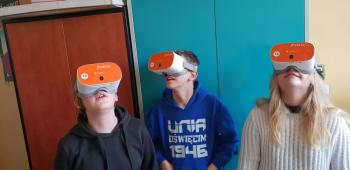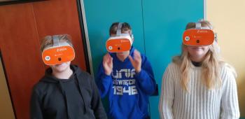 Przy wykorzystaniu okularów zakupionych z funduszu programu #LaboratoriaPrzyszlosci, uczniowie w nietypowy sposób rozwijali spostrzegawczość, koncentrację uwagi, a na koniec zajęć mogli się zrelaksować przy szumie fal i zachodzącym słońcu w wirtualnej rzeczywistości.