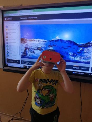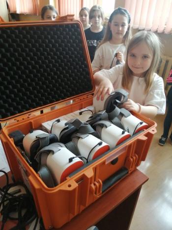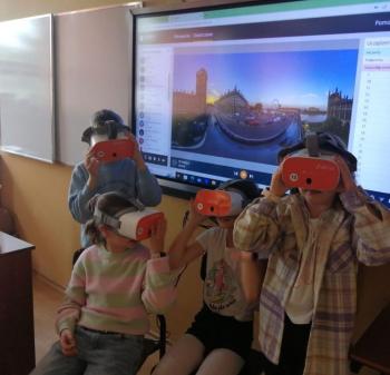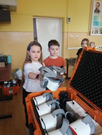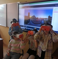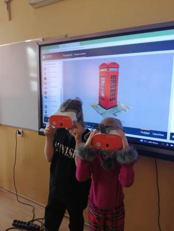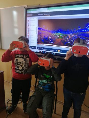Uczniowie klasy 2a udali sie w wirtualną podróż po europejskich miastach wykorzystując okulary zakupione w ramach programu #LaboratoriaPrzyszłości.