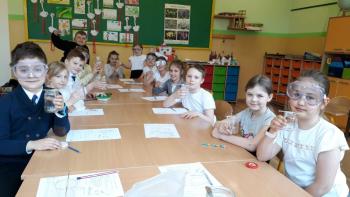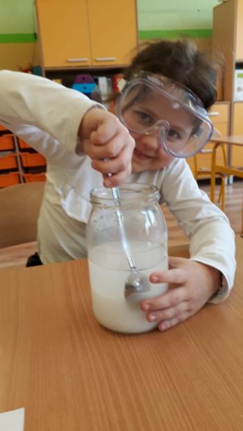 Badali, które substancje rozpuszczają sie w wodzie, a które układają się w kolorowe warstwy. Dowiedzieli się, co należy zrobić, by wyhodować kryształki soli. Prowadzili obserwację założonej hodowli.